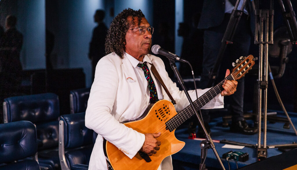 Internado desde ontem cedo no Hospital Geral de Palmas (HGP) após sofrer um Acidente Vascular Cerebral (AVC), o nosso cantor e compositor Genésio Tocantins reage bem ao tratamento a que vem sendo submetido. De acordo com boletim médico passado a familiares e amigos na tarde deste sábado, ele conseguiu se alimentar com vitamina, os pés desincharam mais e seu semblante está bem melhor do que ontem. Além do AVC, Genésio tem uma insuficiência cardíaca que vem sendo acompanhada e tratada.