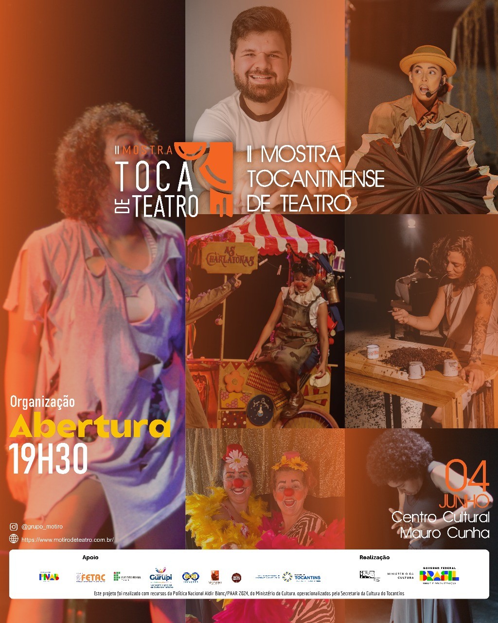 O Centro Cultural Mauro Cunha, em Gurupi, será palco de um dos maiores encontros teatrais do estado nos dias 04, 05 e 06 de junho, com a realização da Mostra Toca de Teatro. O evento é promovido pelo Grupo Motirõ de Teatro, sob a direção do diretor teatral Fernando França, e conta com o patrocínio da Lei Aldir Blanc, por meio do Ministério da Cultura.