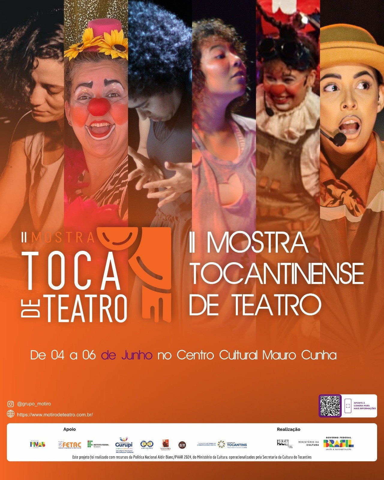 A Mostra Toca de Teatro é um projeto aprovado pela Lei Aldir Blanc Tocantins e conta com o apoio da Secretaria Municipal de Cultura, IFTO e Casa de Cultura Maestro Benevenuto.