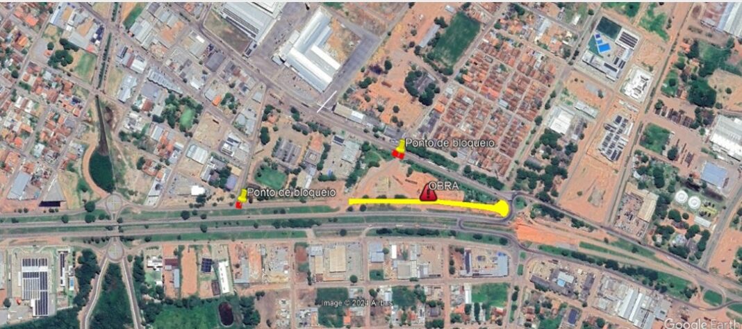 O trecho da via marginal a ser interditado vai da região da Rua H até a rotatória próxima à sede do Dnit, no km 674. O bloqueio vai contemplar ainda o acesso nas proximidades do antigo Posto Cometa.
