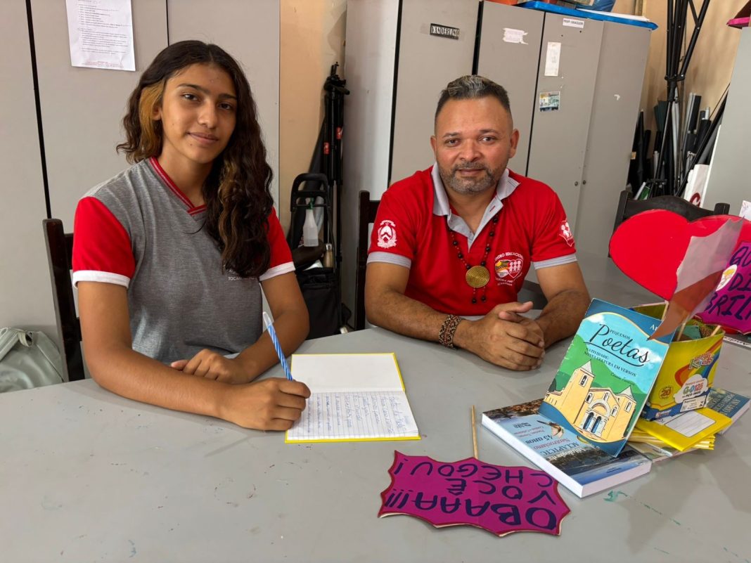 A estudante, que cursa o 8º ano do Ensino Fundamental, mora na Aldeia Salto, do povo Xerente, e participa do Projeto Poetas do Xodó, uma iniciativa que busca formar novos leitores e escritores por meio da poesia, da literatura e da valorização da identidade cultural.