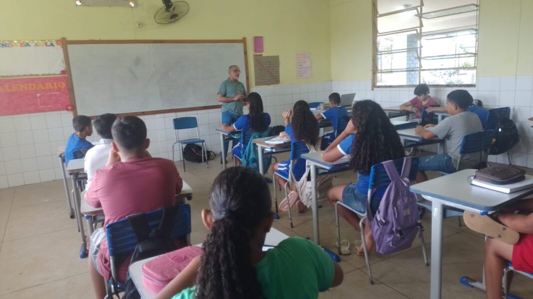 Na manhã desta quinta-feira, 21, o escritor e teólogo João Gomes da Silva, de Gurupi, participou de uma roda de conversa literária com alunos da Escola Municipal de Tempo Integral Antonio Benvindo da Luz. João Gomes é autor de quatro livros publicados e titular da Academia Gurupiense de Letras (AGL).